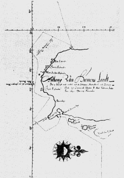 Тасман на своей карте соединил берег Вандименовой Земли с Землей Нейтса, открытой на юге Австралии в 1627 г. Таким образом, Тасмания стала выступом Австралийского материка, и в таком виде ее показывали на всех картах вплоть до начала XIX в.