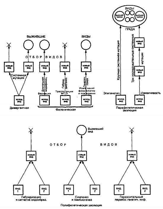 Рис. 27. Обобщенная схема, иллюстрирующая множественность путей видообразования (ориг.)