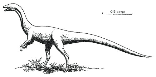 Рис. 47. Coelophysis, типичный динозавр триасового времени. Весьма вероятно, что мелкие следы, показанные на фото 17, оставлены именно этим динозавром.