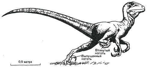 Рис. 49. Deinonychus, хищник, вооруженный острыми когтями.