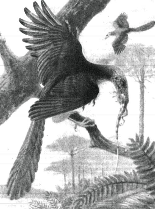 Хотя первая птица и имела перья, она, как и ее родственники - летающие рептилии с кожистыми крыльями, летала плохо. Ее строение указывает на то, что птица, вероятно, была хорошо приспособлена к планирующему полету. Возможно, она жила на суше и, будучи хищником, питалась или мелкими животными, или падалью. То, что ее остатки были найдены в морских известняках, свидетельствует лишь о том, что отдельные экземпляры были унесены в море ветром или течением и погребены в мягком донном иле. Хрупкие тела птиц, погибших на суше, просто не сохранились.