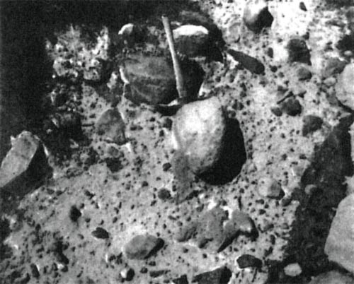 Фото 52. Обломочные отложения времени последнего оледенения, состоящие из неокатанных обломков горных пород различного размера, несортированных и неслоистых. Эти признаки отличают их от водных отложений. Рукоятка ледоруба имеет длину 45 см. Северный склон горы Рейнир, штат Вашингтон.