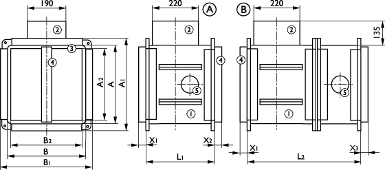 Прямоугольные клапаны выпускают в двух вариантах исполнения корпуса: