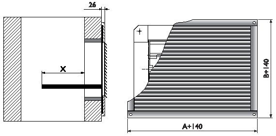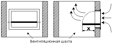 Вылет заслонки клапана за его габариты: X=B-165 мм.