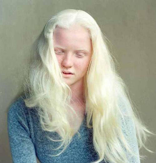 Альбинизм, отсутствие пигмента меланина в глазах, коже, волосах, или перьях.
