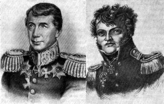 Слева: И.Ф. Крузенштерн; справа: Ю.Ф. Лисянский