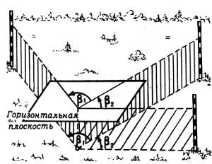 Горизонтальный угол β лежит в горизонтальной плоскости, его лучами служат горизонтальные проекции направлений на наблюдаемые объекты (рис. 69).