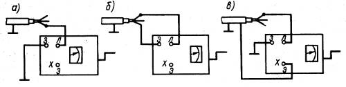 Рис. 4.3. Измерение сопротивления контактного заземляющего устройства с исключением погрешности, вносимой соединительными проводами