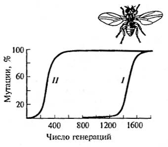Рис. 10.7. Отбор против доминантных (II) и рецессивных (I) признаков при низких и высоких концентрациях (по В. Людвигу, 1940)