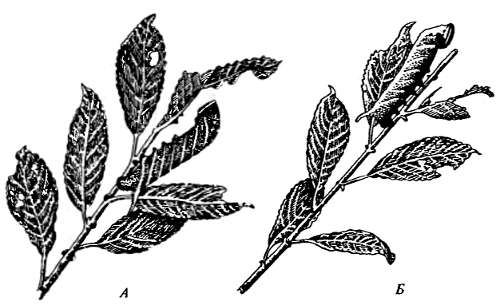 Рис. 11.4. Критическая окраска, поведение и форма тела бражника (Smerinthus ocellatus). Окрашенная по принципу противотени гусеница (5) в случае опасности замирает (Л), становясь малозаметной (из X. Котта, 1950)