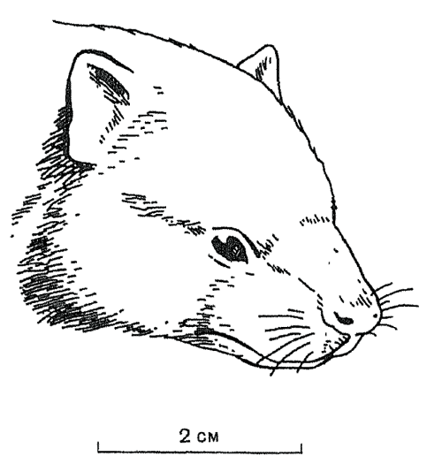 Рис. 54. Голова позднемезозойского млекопитающего. Остальные части тела реконструировать пока не удается, так как найден только череп.