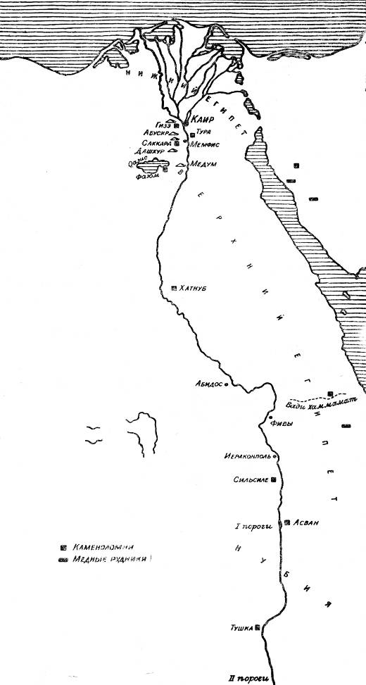 Чтобы понять всю значительность строительства первых больших каменных сооружений, следует помнить, что египтянам III тысячелетия не были известны ни взрывчатые вещества, ни железные, а тем более стальные орудия, ни такие горные породы, как алмаз, корунд, наждак, или другие средства, при помощи которых добывают и обрабатывают камень в наше время. В распоряжении египетских каменщиков того времени, как мы увидим ниже, были несложные средства транспорта и, орудия, изготовленные из дерева, камня и меди.