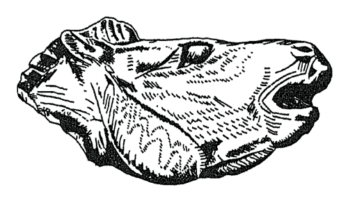 Рис. 81. Голова лошади, вырезанная из рога северного оленя художником эпохи самого конца позднего палеолита около 10 500 лет назад.