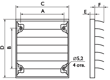 Инерционная решётка предназначена для автоматического перекрывания вытяжных отверстий при выключении вентилятора или другого применения. Решётка изготовлена из влагостойкого нейлона и обладает повышенной устойчивостью к ультрафиолетовому излучению. Конструкция решётки позволяет крепить её шурупами на наружной стороне стены. Решётка может быть установлена только вертикально, лопастями вниз. Максимальная скорость воздуха через решётку составляет 12 м/с.