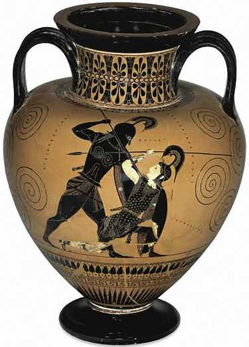 Ахиллес убивает Пентесилею, царицу амазонок, чернофигурная амфора